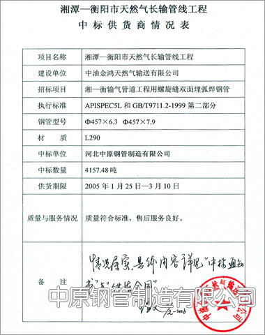 中油金鴻天然氣有限公司業(yè)績(jī)證明